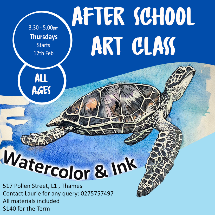 In this after-school art class, we’ll slow down and let the paint flow. Using watercolor and ink, we’ll explore washes, textures, and light, then add ink for definition and character. We’ll learn when to guide the journey and when to let the water carry us. This class is about curiosity, movement, and finding your own rhythm on the page.